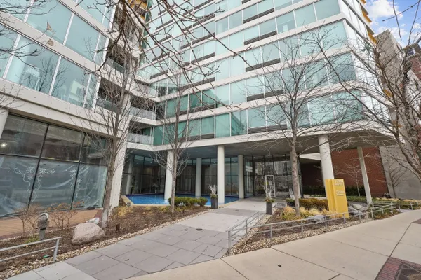 Optima Views is the premier residential condominium building in Evanston. This 28-story concrete and glass building was designed with a unique angled face that maximizes views of Lake Michigan and the downtown Chicago skyline, which helped earn it a Distinguished Building Award from the Chicago Chapter of the American Institute of Architects in 2005. The distinctive entry courtyard welcomes residents and guests with a paved walk, reflecting pond, and fountain leading to the glass-enclosed lobby and elevators.
