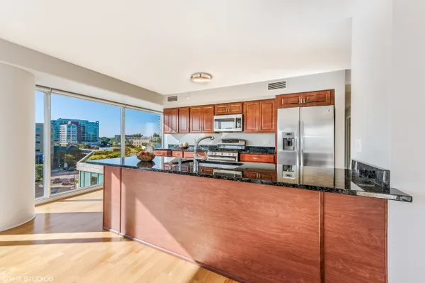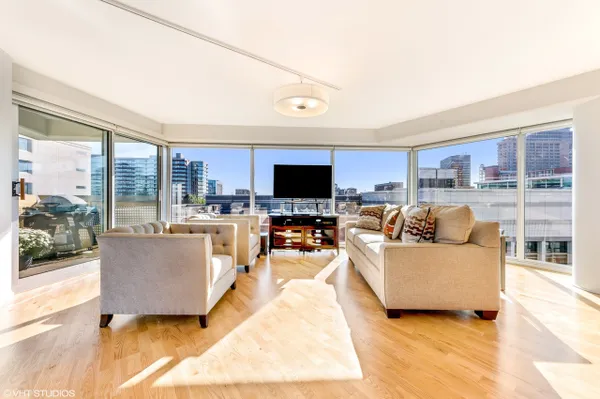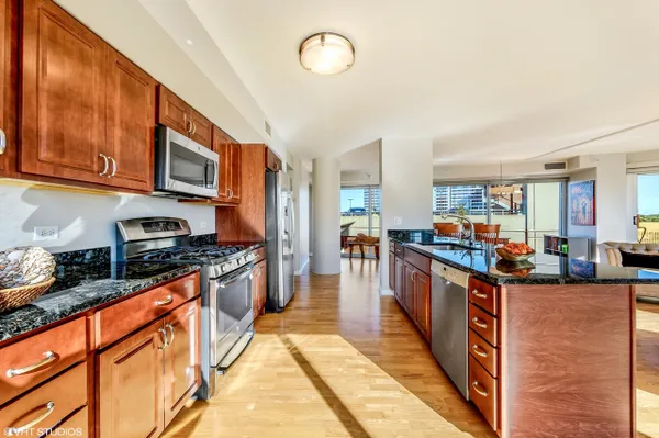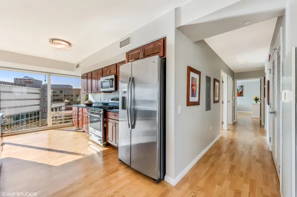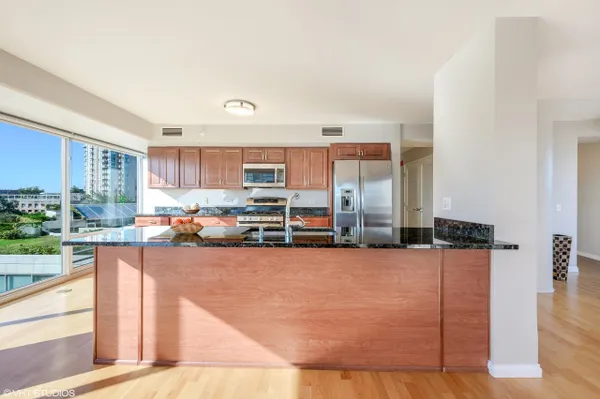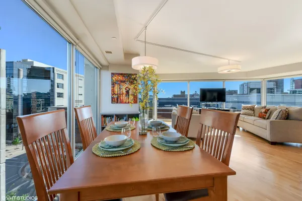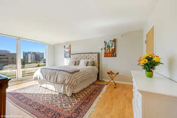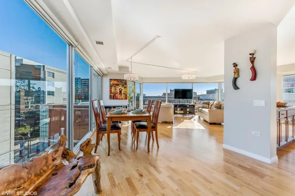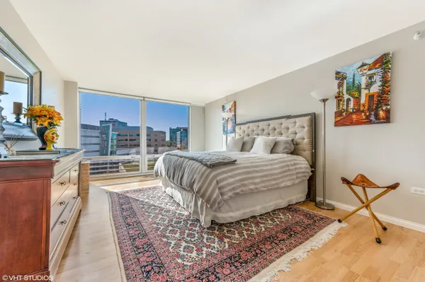 Large corner East Tier unit in the highly desirable Optima Views luxury condo building in downtown Evanston. Well maintained 3 bedroom, 2 bathroom condo with three fantastic exposure views including views that overlook the lush green terraces and Maple Avenue. High-end upgrades made throughout the condo, including hardwood floors, high-end stainless steel appliances, custom closet shelving (also adjustable), custom light weave blinds and shades, custom mirrors in bathrooms and custom light fixtures. A new blower motor was recently installed. This condo has it all. The condo has floor to ceiling windows with great natural light. Open floor plan and eat-in kitchen offers great space for entertaining family and friends. Lots of cabinet space. Spacious master suite w/ large walk-in closet. Walking distance to train station, restaurants, shops, beaches. This is downtown Evanston living at its very best! Parking Space # 8 and Storage Space #192. Unit is currently rented until July 31st. (Pictures are from before current tenant moved in.)